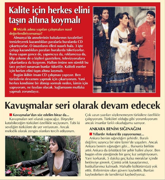 Büyük şehirle tanıştığında 12 yaşında olan Kayserili Seza Kırgız, o zamana kadar türkülere konu olan Gesi Bağları’nda büyüdü. Hacettepe Üniversitesi Ankara Devlet Konservatuvarı mezunu sanatçı tam 25 yıldır operetlerde görev alıyor. Seza Kırgız, “Bugün türkülere sevdalandıysam bunda, annemin beni uyuturken söylediği türkülerin rolü büyük" diye konuştu